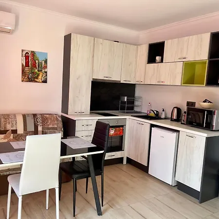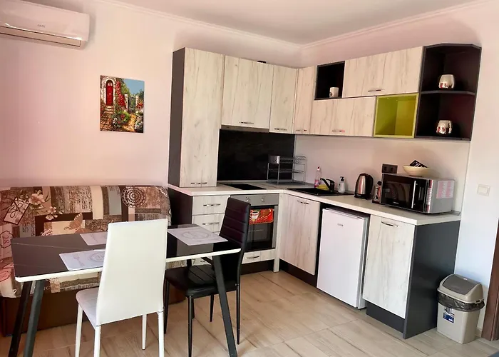 設備の整った台所で食事を楽しめます。 ブルガス空港までは車で28分で行けます。 最後に、テラスからプールの景色を楽しめます。